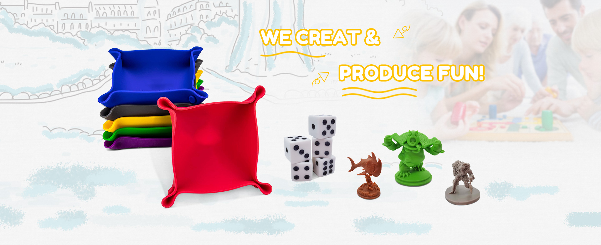 We can produce custom printing & packing, wooden, plastic and metal components at our own factory, as well as custom dices and miniatures. Meanwhile, we can make dummy samples for customers.
